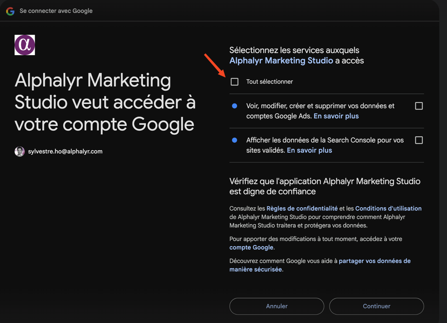 Connecter Marketing studio à Google Ads permet de récupérer les dépenses de Google Ads